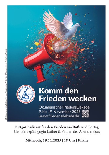 Herzliche Einladung zum Bittgottesdienst für den Frieden am 19. November