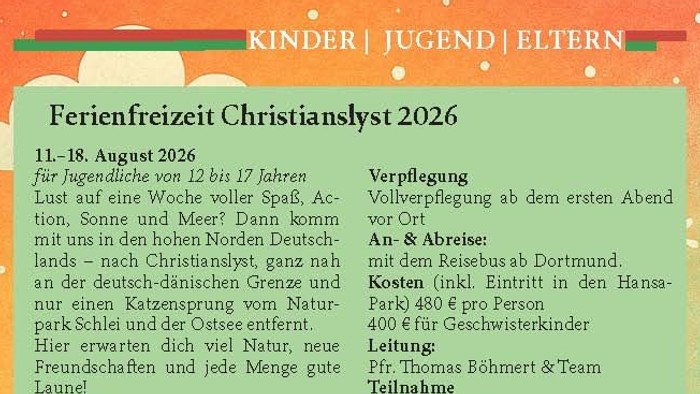 Ferienfreizeit Christianslyst 2026 vom 11. bis 18. August 2026